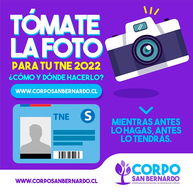 ¡Atención estudiantes de San Bernardo! El lunes 29, martes 30 de noviembre y miércoles 01 de diciembre se habilitarán puntos de atención donde podrán tomarse la fotografía para la Tarjeta Nacional Estudiantil (TNE) 2022.